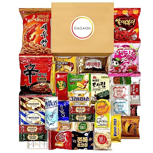 DAGAON Finest [Korean Variety Snack] Box 34 Count – Including [Korean]’s Favorite Chips, Biscuits, Cookies, Pies, Candies. Perfect appetizing for any occasions, gifts and everyone.