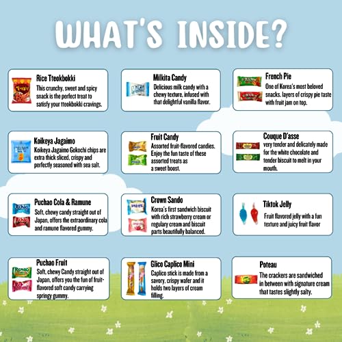 Japanese and Korean Snack Box 45 Packs - Variety Pack of Candies, Chips, Cookies, Crackers, and Gummies, Friends and Family, Treats, Munches Kids, Children, College Students, Adult, Great Gift