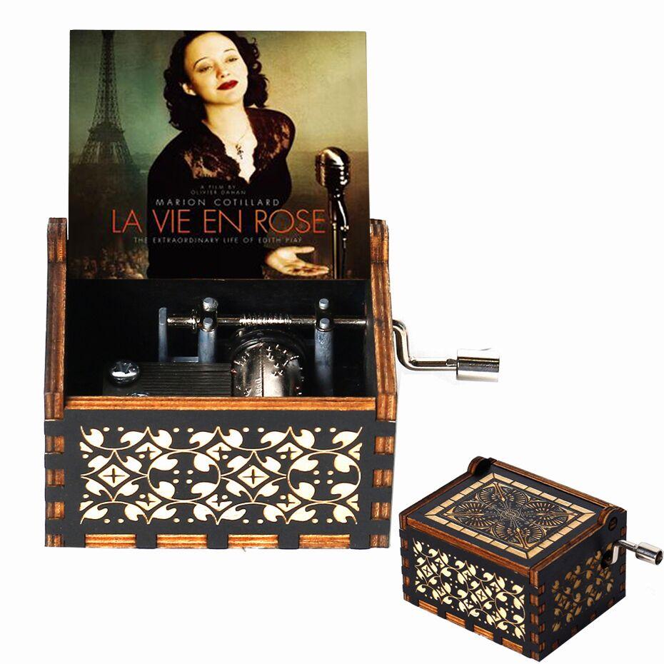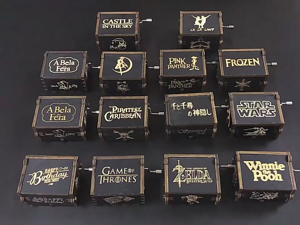 2025 Black Wooden Music Box Jurassic Park Caja Musical Queen Totoro Hand Cranked Wood Musical Box Christmas Gift