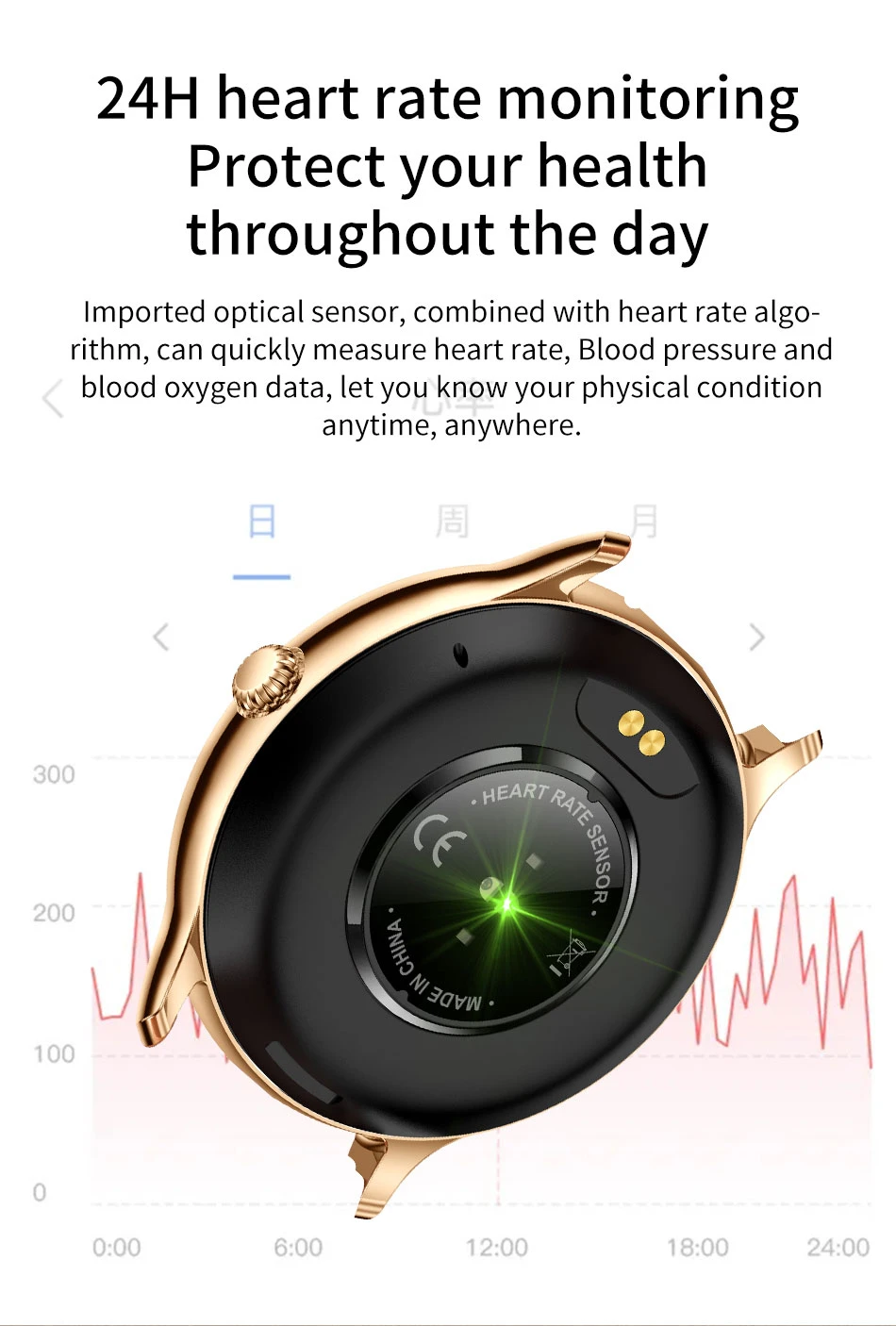 Function: Passometer,fitness tracker,sleep tracker,Mood Tracker,Message Reminder,Call Reminder,Answer Call,Dial Call,Remote Control,Push Message,24 hour instruction,Chronograph,Alarm Clock,World Time,Power Reserve,week,Speed Measurement,Month,Heart Rate Tracker,Interactive Music,Noctilucent,Calendar