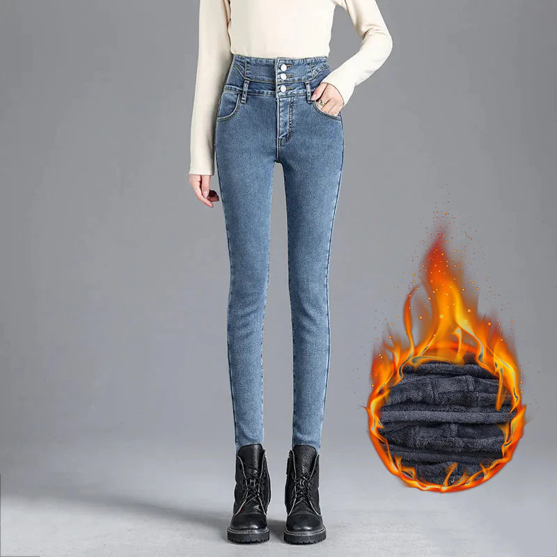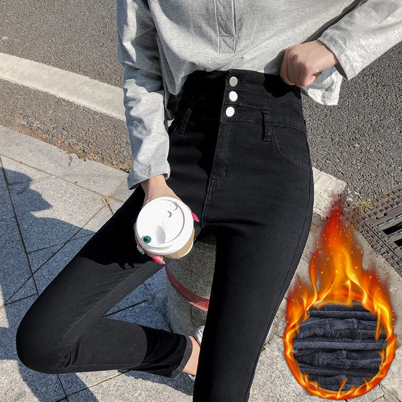 Streetwear High Waist Plush Lined Jeans Winter Thicken Slim Denim Pants Women's Skinny Pencil Vaqueros Vintage Leggings Trousers