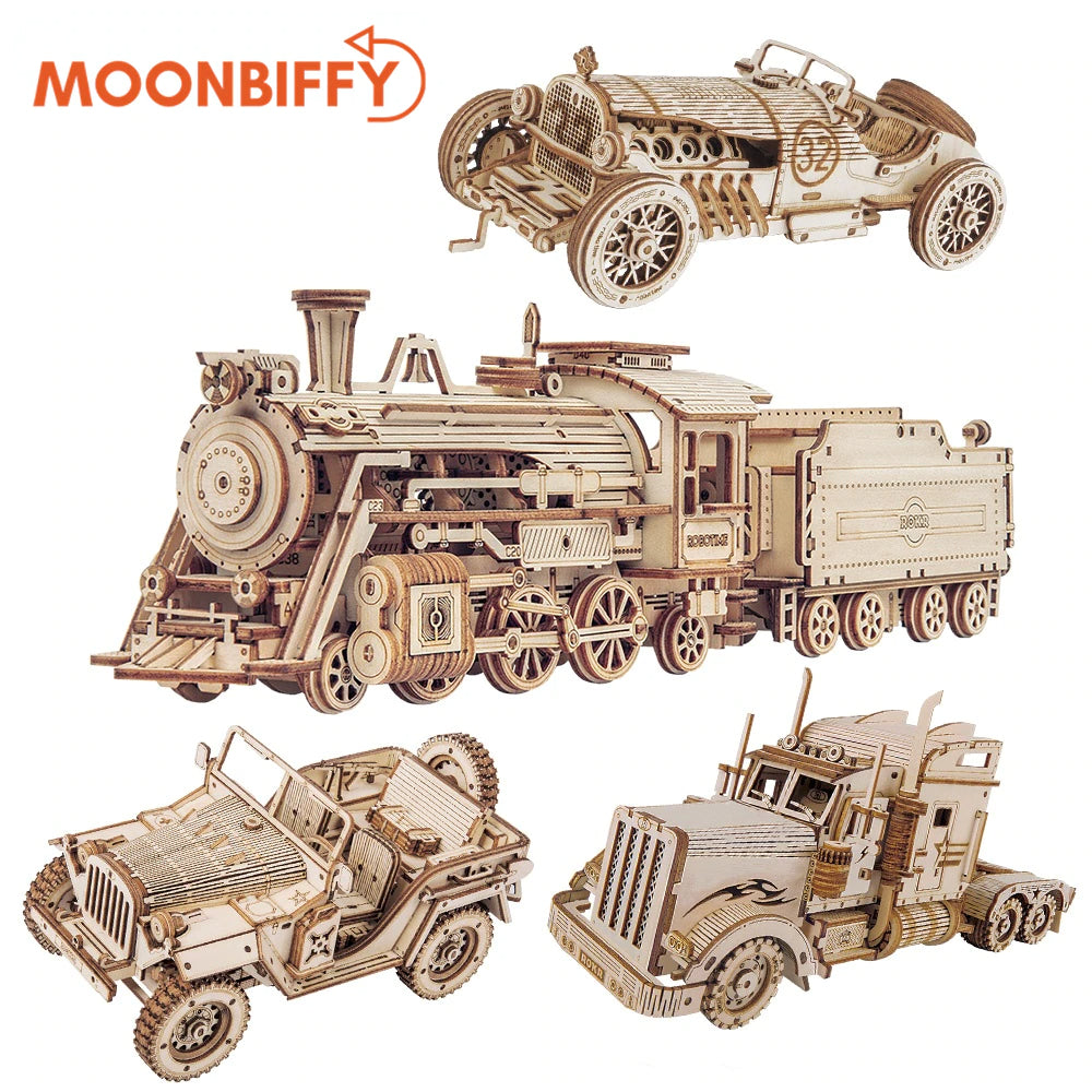 Train Model 3D Wooden Puzzle Toy Assembly Locomotive Model Building Kits for Children Kids Birthday Gift Wooden Building Toys