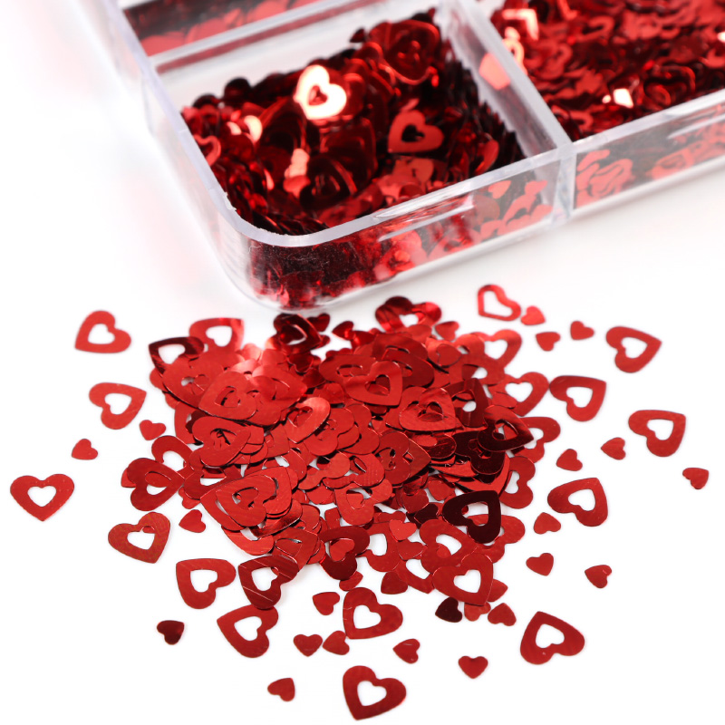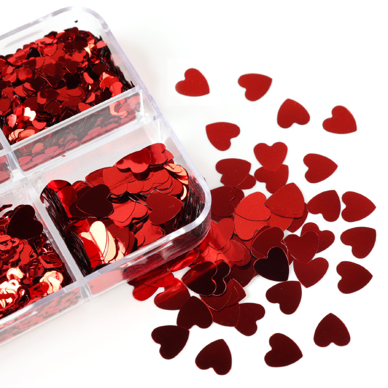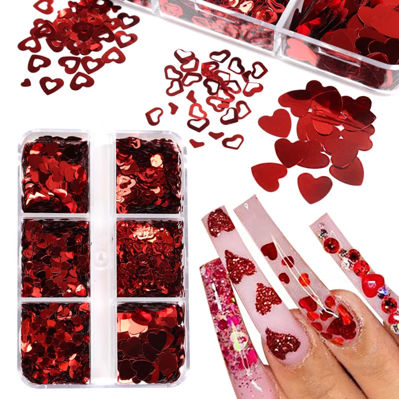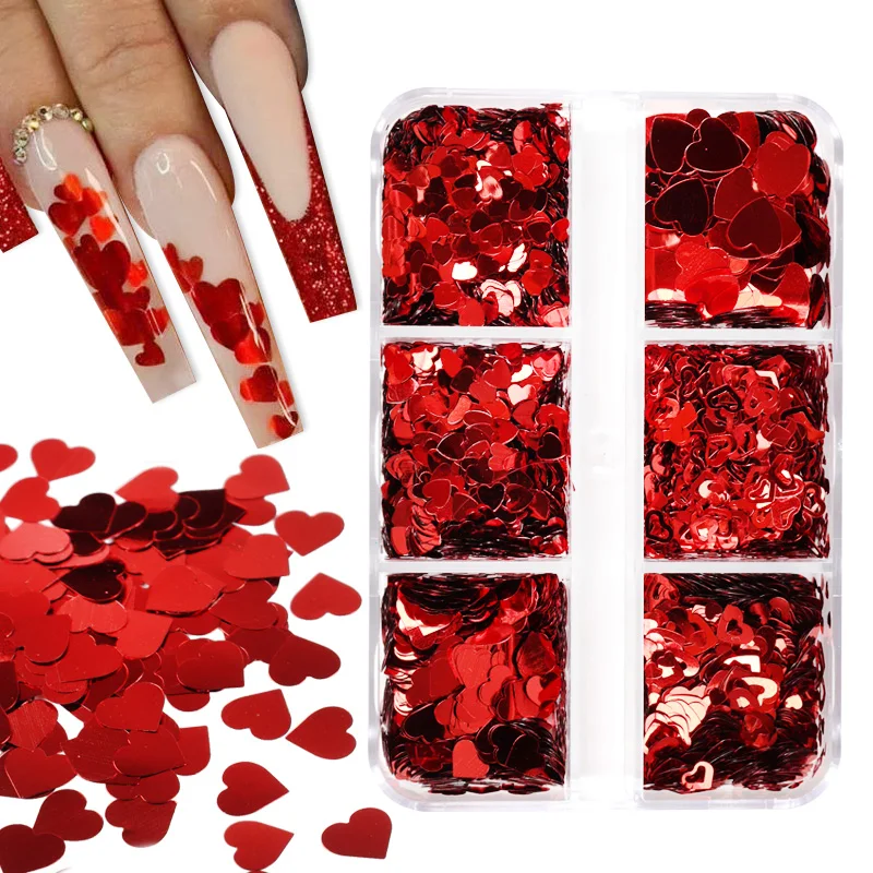 Valentines Day Mixed Love Heart Nail Glitter Red Flake Sequin Powder Decorative Accessories For Professional Nail Art Supplies