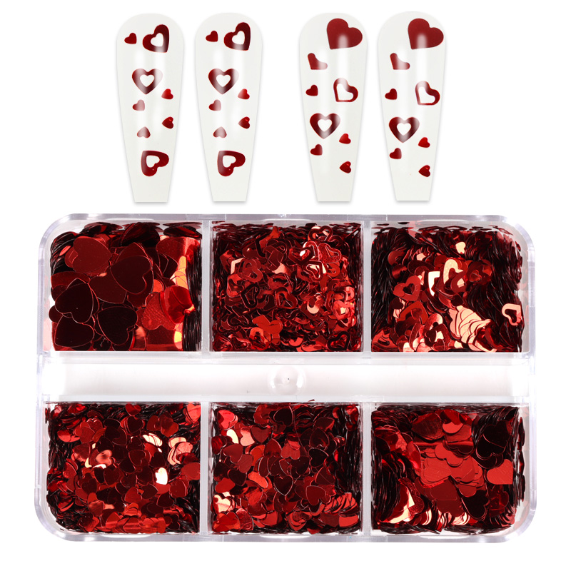 Valentine's Day Mixed Love Heart Nail Glitter Red Flake Sequin Powder Decorative Accessories For Professional Nail Art Supplies