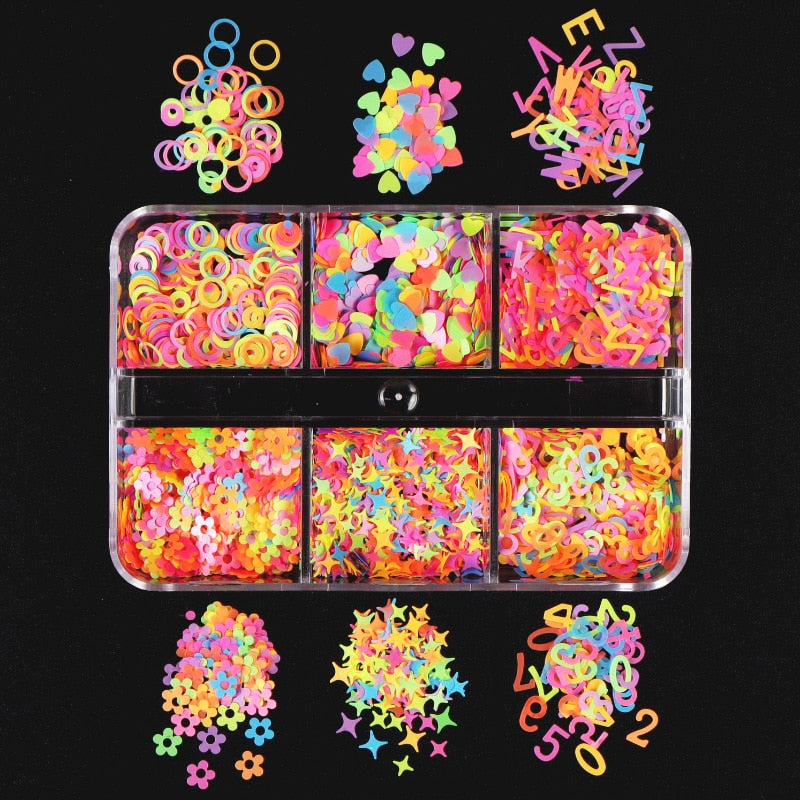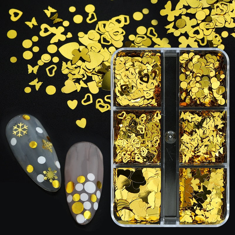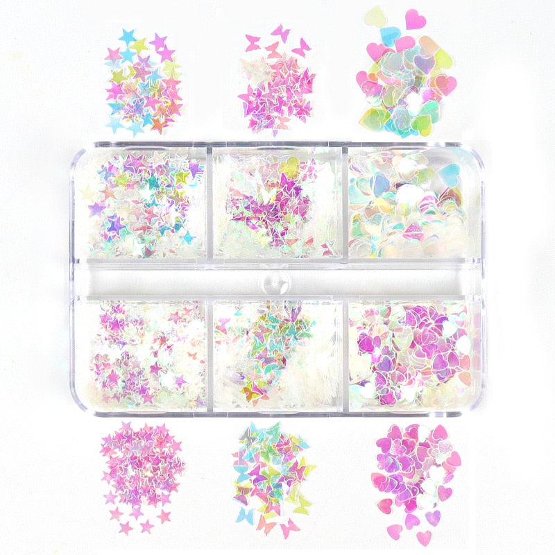 Package: 6 Grids Nail Glitter Sequins
