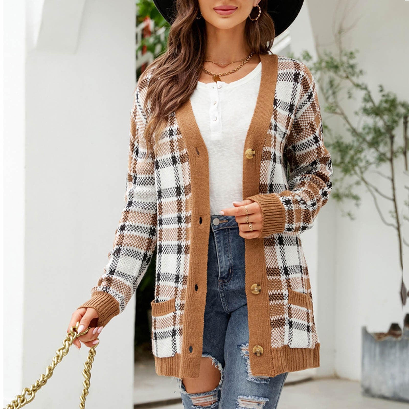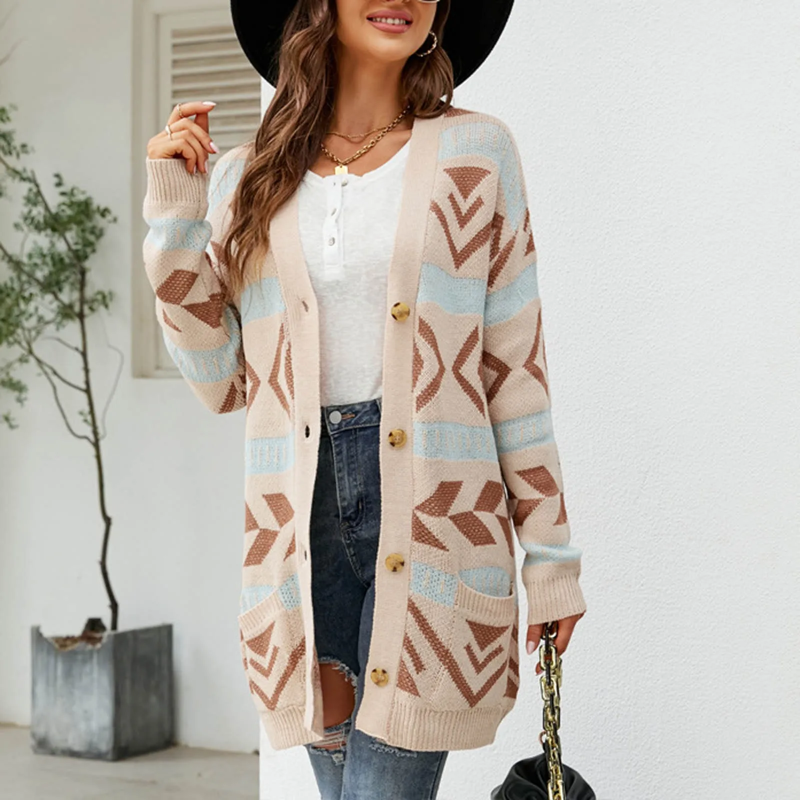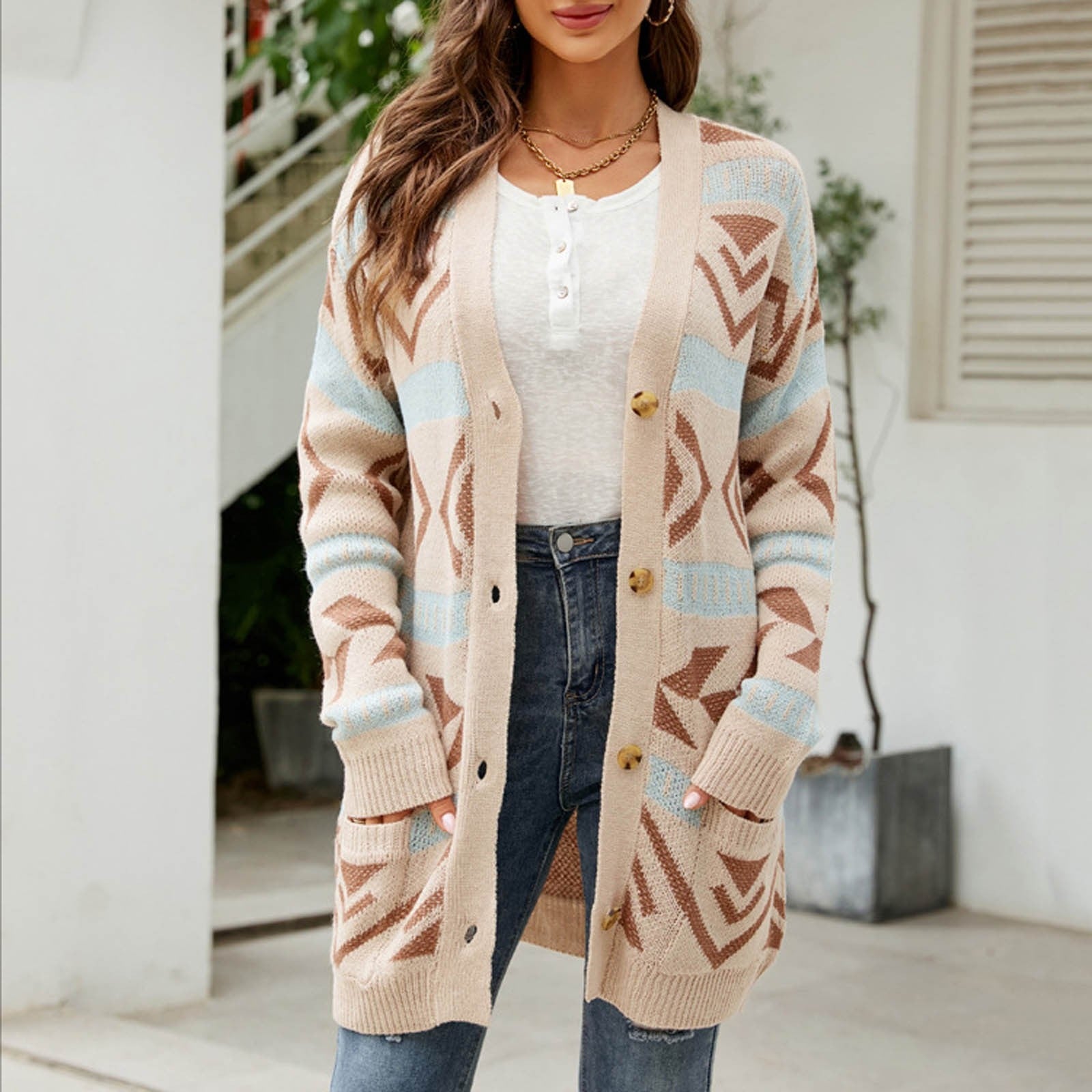 Women's Fashion Autumn And Winter Temperament Lozenge Loose Sweater In Long Knit Cardigan Coat